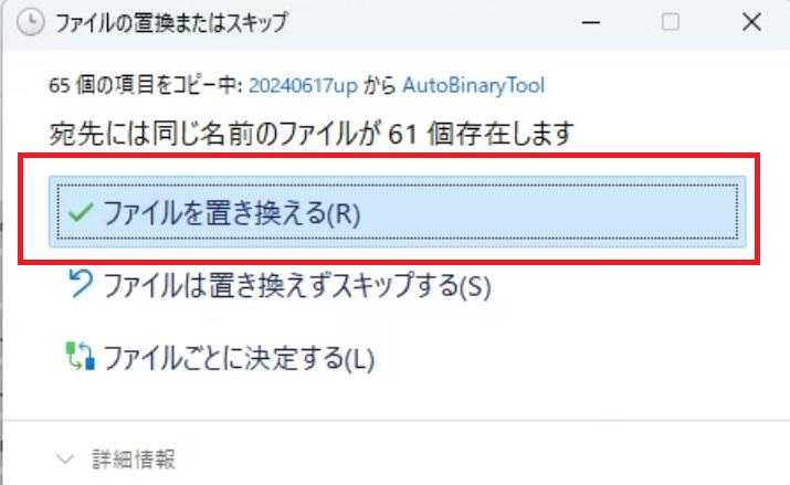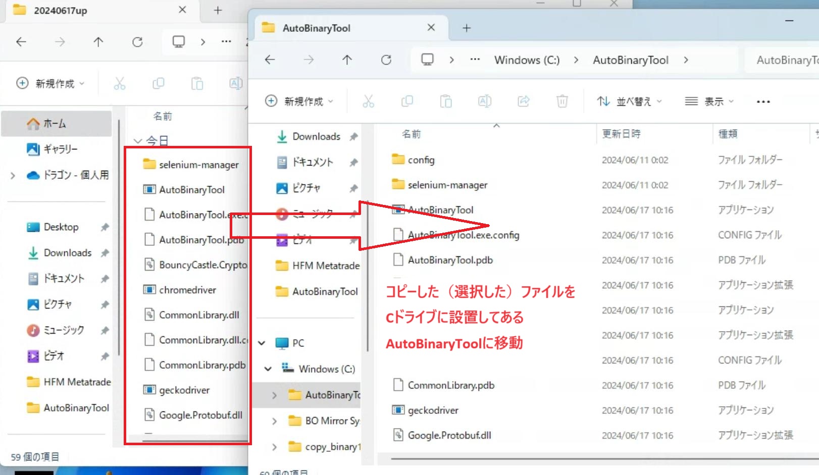 Cドライブにあります、copy_binary1フォルダを開いていただいて