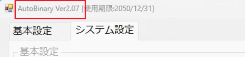 AutoBinary Ver2.07となっていれば、バージョンアップの完了です。