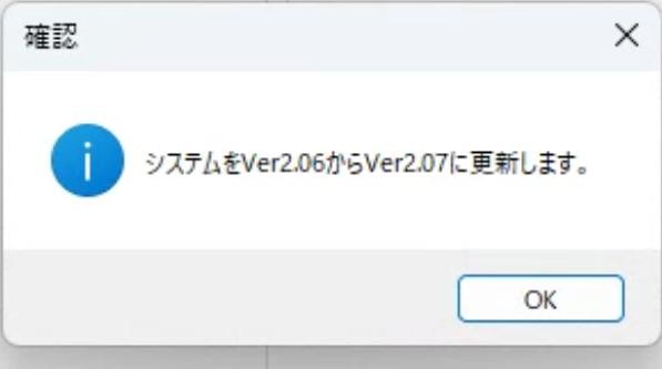 バージョンアップの確認が出ますので、【OK】をクリックしてください。